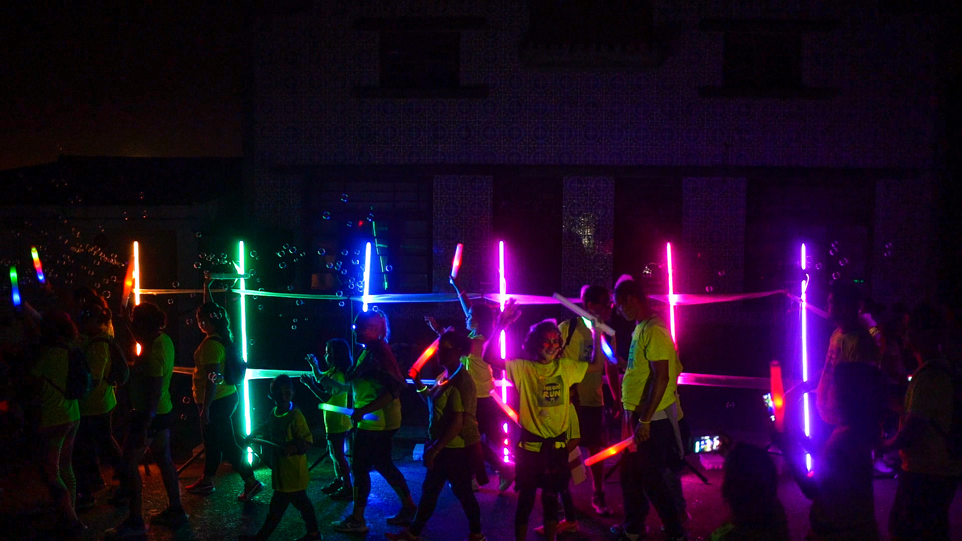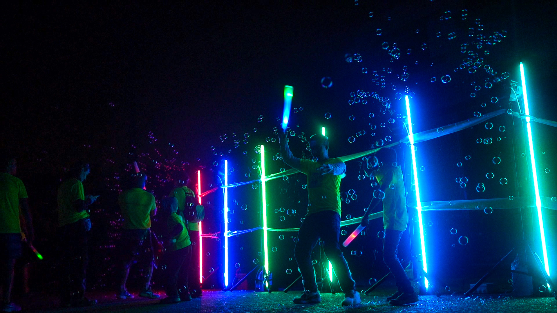 Esta instalação visual desenvolvida por nós comporta barras de iluminação LED de dois metros de comprimento e com coloração diversa.