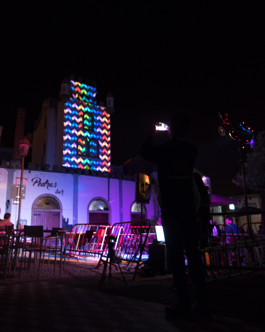 O espectáculo de video mapping decorreu durante o Festival Internacional de Marionetas de Ovar, pelo que aproveitamos para integrar a apresentação da egg com uma curta história sobre um dragão-marioneta. O show foi também acompanhado por iluminação ambiente sincronizada que iluminava de forma temática todo o envolvente da projeção. Para além disso fizemos também uso de efeitos físicos que criaram uma surpresa memorável no final do espetáculo e garantiram que as pessoas voltaram para casa com uma história para contar.